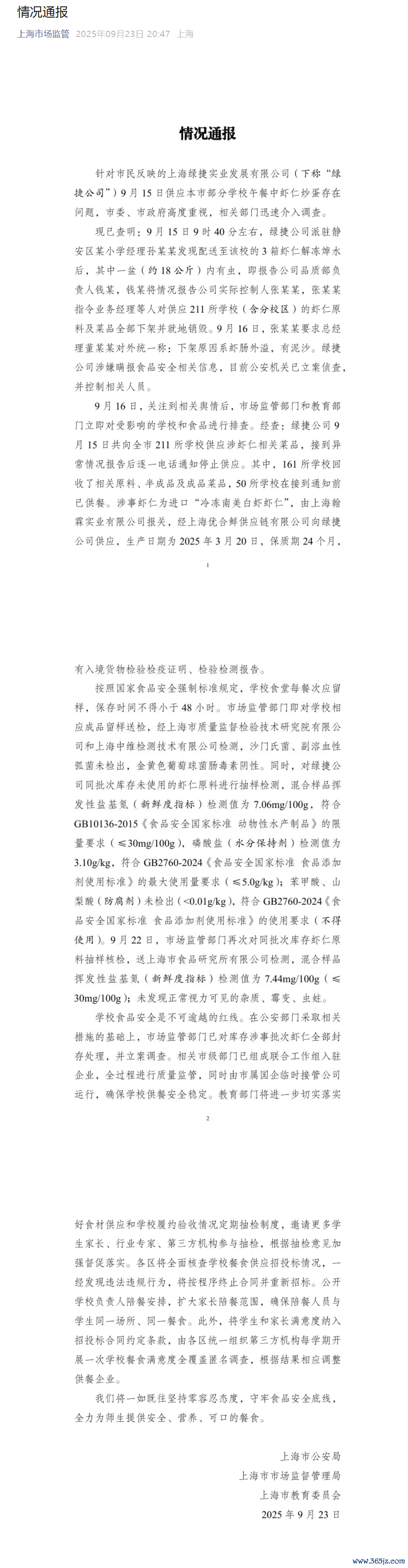 三部门通报“部分学校午餐虾仁炒蛋存在问题”造访情况