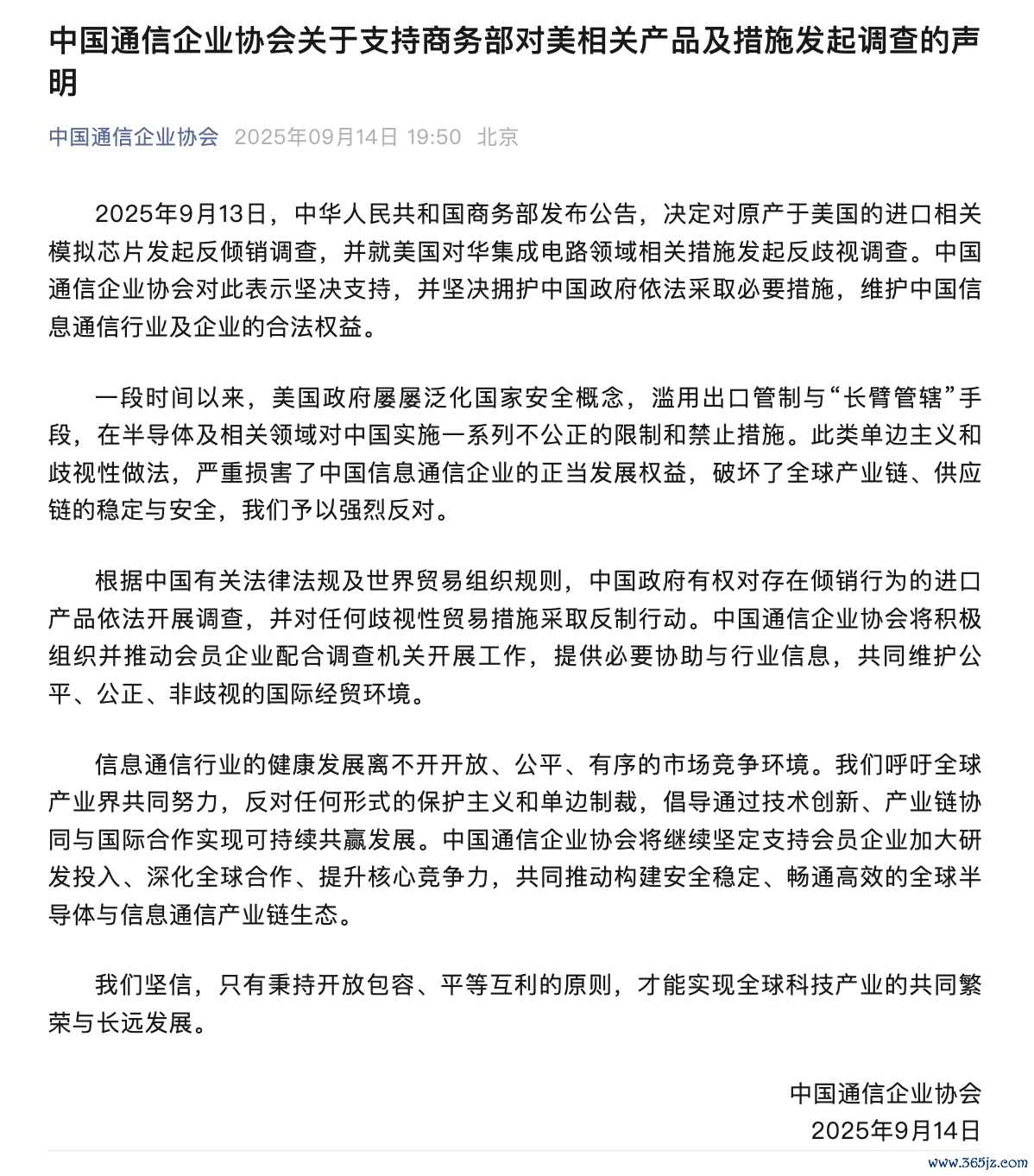 中国通讯企业协会:撑握商务部对好意思关系家具及口头发起造访